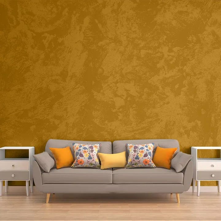 Brighto Velvet is a specialized designer product for internal surfaces and applied by skilled artisans. The surface has to be smooth, clean, and prepared for the application. Apply one coat acrylic primer diluted with 15-20% water by using roller and allow it to dry for 2 hours. Then apply first coat velvet diluted with 15-20% by using roller and allow it to dry for 3 hours. Apply second coat to make a desired design with a plastic trowel moving on a wet surface in a globular manner.