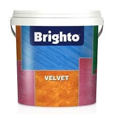 Brighto Velvet is a specialized designer product for internal surfaces and applied by skilled artisans. The surface has to be smooth, clean, and prepared for the application. Apply one coat acrylic primer diluted with 15-20% water by using roller and allow it to dry for 2 hours. Then apply first coat velvet diluted with 15-20% by using roller and allow it to dry for 3 hours. Apply second coat to make a desired design with a plastic trowel moving on a wet surface in a globular manner.